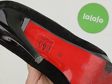 Czółenka damskie na szpilce, rozmiar 37 - Model: peep toe (otwarty nosek) - Kolor: czarny z dekoracyjną, lakierowaną lamówką w czerwieni - Cholewka: miękki materiał o fakturze zamszowej - Wnętrze:...