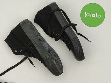 Czarne trampki unisex, wysoka cholewka - Klasyczny fason z białą gumową osłoną palców i wzmacnianym noskiem - Materiał wierzchni: płótno (canvas) w kolorze czarnym - Kontrastowe białe sznurówki i ...