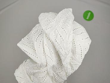 Bluzka damska biała z koronkową wstawką - Krój: luźny, lekko wydłużony tył, krótkie rękawki z delikatną falbanką - Dekolt: okrągły z wiązaniem na troczki - Góra: przezroczysta siateczka z kwiatowy...