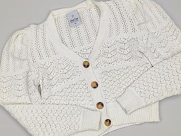 Ażurowa narzutka/kardigan damski - Kolor: kremowy/śmietankowy - Rozmiar z metki: L - Krój: luźny, otwarty z przodu (bez zapięcia) - Rękawy: krótkie, zakończone ażurową, wycięciową lamówką - Detale...