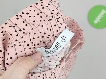 Różowa spódnica DeeZee „Lumia” w czarne drobne kropki. Model mini z falbaną i dekoracyjnym marszczeniem przy metalowym kółku po boku, tworzącym efektowne wiązanie/przełożenie. Tył z elastyczną gumką w pasie dla wygodnego dopasowania.