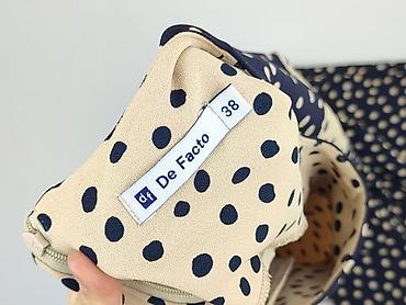 - Wzór: groszki (kontrastowe panele beżowe z granatowymi kropkami oraz granatowe z beżowymi kropkami).