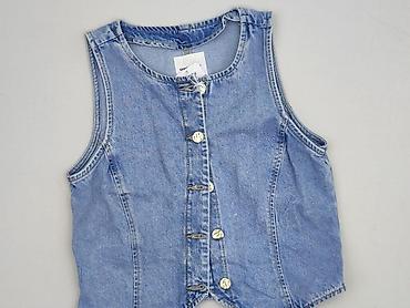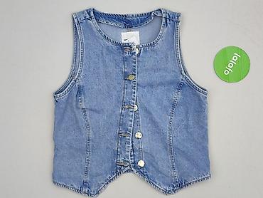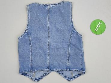 Damska kamizelka jeansowa, rozmiar S - Fason: krótka, dopasowana kamizelka bez zapięcia, z głębokim wycięciem z przodu - Materiał: denim w klasycznym, niebieskim odcieniu z lekkim cieniowaniem - D...Rozmiar: