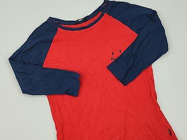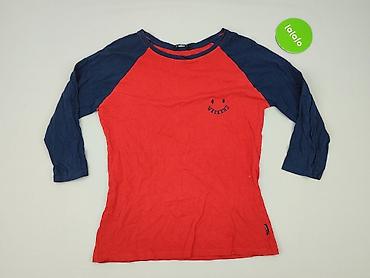 Czerwona bluzka damska, rozmiar 38. - Fason: luźny, z krótkim rękawem typu kimono/dolman - Dekolt: okrągły - Zapięcie: rząd ozdobnych guzików z tyłu - Dół: szeroki, elastyczny ściągacz - Materiał:...