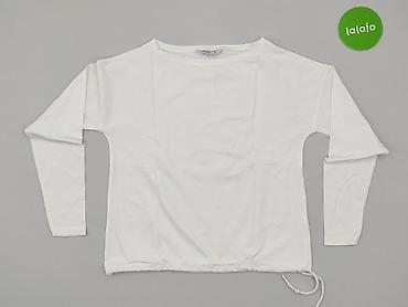 Bluzka damska w kolorze kości słoniowej/ecru, z długim rękawem. - Przód wykonany z fakturowanej dzianiny z pętelkową strukturą (miękkie, lekko wypukłe niteczki). - Tył i rękawy z lekkiego, półtran...