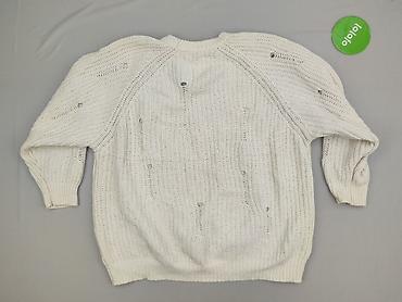 Damski sweter z długim rękawem, „włochaty”, kremowy/ecru. - Rozmiar: M (EU M) – metka. - Fason: klasyczny pulower z okrągłym dekoltem, lekko wydłużony dół. - Dzianina o wyraźnym, ażurowym splocie i...