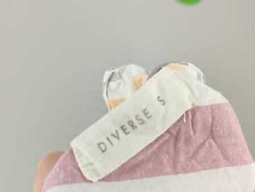 - Wzór: kolorowe, pionowe/paskowe pasy (mięta, lila, żółty, róż, szary, biały)