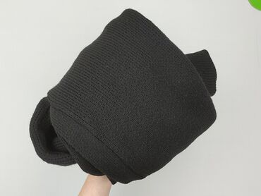 Czarny kardigan damski z kapturem - Fason: otwarty kardigan bez zapięcia, z wygodnym kapturem - Rękawy: 3/4 - Materiał: elastyczna dzianina z ażurową, perforowaną fakturą (na metce: 96% poliester,...