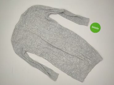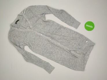 Szary, gładki kardigan damski marki Mohito, rozmiar S. Charakteryzuje się długim rękawem oraz brakiem zapięcia, co nadaje mu swobodny, otwarty fason. Jest to element garderoby, który dobrze sprawdz...