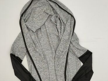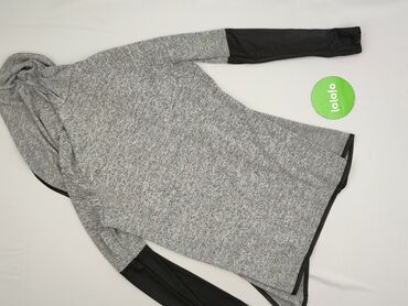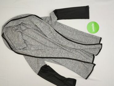 Długi kardigan/dresowa narzutka z kapturem - Kolor: melanż szary - Krój: otwarty przód bez zapięcia, pasek do przewiązania w talii - Długość: za biodra (tunika/mini płaszczyk) - Rękaw: długi - Kap...
