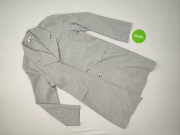 Damski żakiet/płaszcz w kolorze szarym (melanż). - Krój: taliowany, długość do połowy uda - Zapięcie: rząd klasycznych guzików z przodu (7 szt.) - Kołnierz: wykładany - Rękawy: długie, z potrójnym...