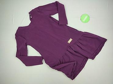 Sukienka damska, rozmiar M - Krój: połączenie góry z prążkowanej, miękkiej dzianiny i dołu przypominającego spódnicę z zakładkami; podkreślona linia pasa. - Kolor: góra fioletowo-niebieska, dół gr...