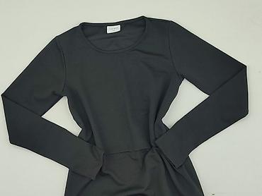 Czarna sukienka damska, wyprodukowana we Włoszech. - Rozmiar: S (z metki) - Materiał: 100% poliester - Fason: dopasowany, podkreślający sylwetkę - Długość: mini/przed kolano - Rękaw: 3/4 - De...