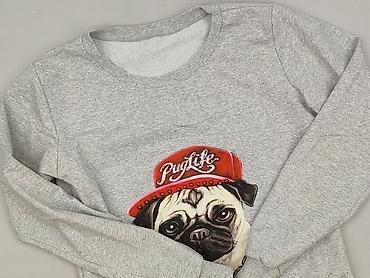 Szara sukienko-bluza damska z długim rękawem i okrągłym dekoltem. Na przodzie duży nadruk mopsa w czerwonej czapce z napisem „Pug Life”, ozdobiony ćwiekami i błyszczącymi dżetami; dodatkowo nadrukowany złoty łańcuch z kostką. Fason prosty, lekko dopasowany, ściągacze przy rękawach i u dołu. Materiał: 95% bawełna, 5% elastan (miękka dzianina dresowa, elastyczna i wygodna). Kolor: jasny szary melanż. Idealna na co dzień, do legginsów lub rajstop. Dla dorosłej kobiety. Stan: idealny. Używana.
