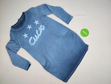 Sukienka damska z długim rękawem w odcieniach niebieskiego. Góra z miękkiej, elastycznej dzianiny bawełnianej, okrągły dekolt. Dół tworzy marszczona, lekko rozkloszowana spódnica z tkaniny o jeanso...