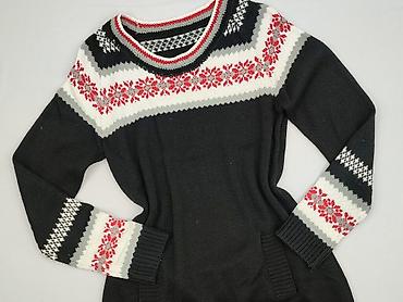 Sukienka swetrowa damska, czarna - Fason: dopasowana dzianinowa tunika/sukienka swetrowa - Rękawy: 3/4, szerokie ściągacze prążkowane - Dekolt: okrągły - Kieszenie: dwie naszywane z przodu - Dodat...