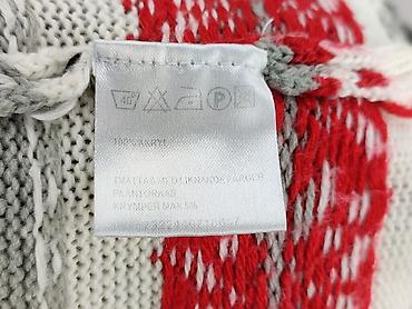 - Wzór: pasy z motywem skandynawskim/śnieżynkami w kolorach bieli, szarości i czerwieni na karczku, rękawach i dole
