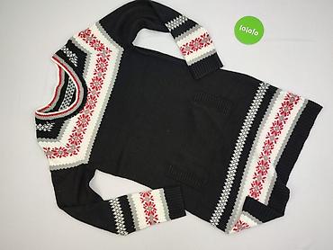 Sweter damski z dzianiny – czarny z norweskim wzorem