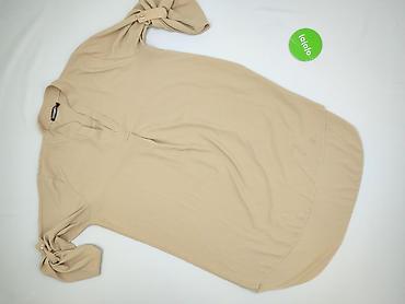 Sukienka damska z paskiem – kolor jasny beż/nude - Krój: prosta, luźna tunika z krótkim rękawem-kimono; półokrągły dekolt; dół zaokrąglony po bokach - W komplecie: materiałowy pasek do przewiązani...