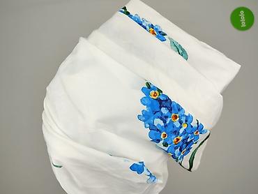 Bluzka damska bez rękawów - Kolor: biel z dużym, malarskim nadrukiem kwiatów w odcieniach kobaltu, niebieskiego, zieleni i żółtego (przód); tył gładki biały - Krój: prosty, swobodny, z łagodnym de...