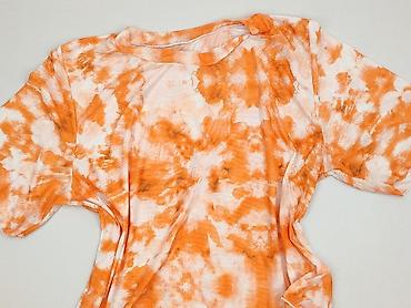 Bluzka damska z dzianiny, wzór tie-dye w odcieniach pomarańczowego i bieli.