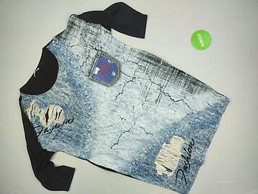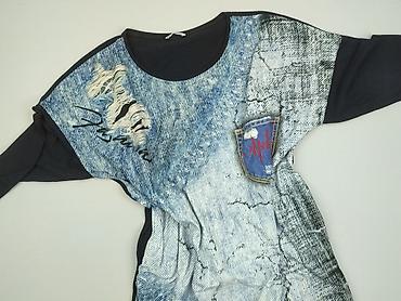Stylowa tunika łącząca gładki czarny tył i rękawy z efektownym frontem w „jeansowym” klimacie – idealna do legginsów lub rurek. Elastyczna, wygodna, dobrze układa się na sylwetce. Dla kobiety. Używana.