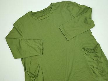 Zielona damska sukienka z dzianiny - Fason: prosta, luźniejsza, T‑shirt dress - Rękaw: długi (ok. 3/4 do pełnej długości, w zależności od wzrostu) - Dekolt: okrągły - Długość: za kolano/średnia (mi...