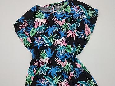 Sukienka damska Esmara z wiskozy LENZING ECOVERO - Fason: prosta, lekko taliowana, długość przed kolano - Dekolt: okrągły z małym łezkowym rozcięciem z tyłu - Rękaw: krótki - Wzór: tropikalny nadr...