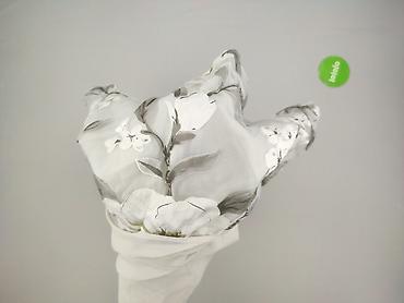 - Góra: półtransparentny szyfon z romantycznym, dużym motywem kwiatów w odcieniach bieli i szarości; delikatne przeszycia modelujące; półokrągły dekolt.