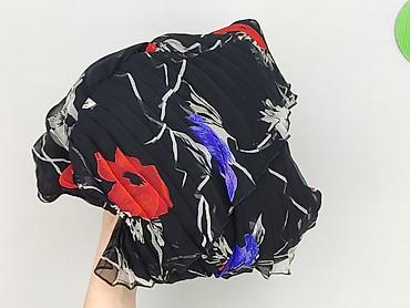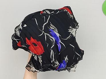 - Wzór: czarne tło z dużymi kwiatami w odcieniach czerwieni, niebieskiego i szarości; subtelne, jasne gałązki.