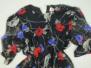 Sukienka damska PRIMARK - Model: kopertowa, z wiązaniem w pasie - Wzór: czarna w kolorowe, kwiatowe motywy (żółte, turkusowe, fuksjowe akcenty) - Rękaw: krótki - Dół: lekko rozkloszowany, z subtel...