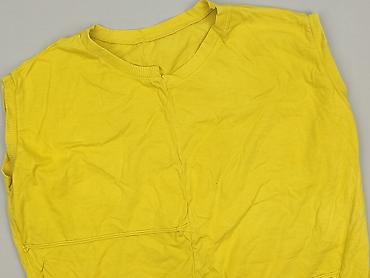 Damska bluzka bez rękawów w kolorze intensywnej żółci. Luźny, asymetryczny krój z wydłużonym bokiem; okrągły dekolt wykończony prążkowaną lamówką. Materiał miękki, bawełniany w dotyku. Dekoracyjne, widoczne szwy łączone z przodu nadają całości swobodny, casualowy charakter. Idealna do letnich stylizacji, na co dzień lub jako warstwa do kardiganu. Uniwersalna, lekka i wygodna.