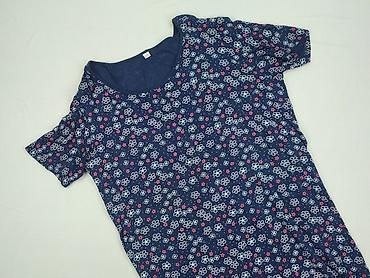 Damska sukienka w kwiaty - Krój: luźny, lekko rozkloszowany, z krótkim rękawem - Dekolt: okrągły - Długość: przed kolano (mini/krótka) - Wzór: duże białe kwiaty na granatowym tle - Materiał: miękk...Stan: