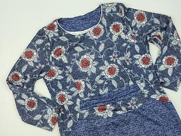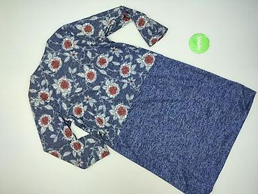 Sukienka damska, rozmiar 44. - Fason: prosta, do kolan, z długim rękawem. - Materiał: lekki, zwiewny, półprzezroczysty wierzch; podszewka w części spódnicowej (na zdjęciu widoczna granatowa warstw...