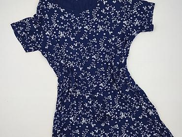 Damska sukienka w kwiaty - Krój: luźny, lekko rozkloszowany, z krótkim rękawem - Dekolt: okrągły - Długość: przed kolano (mini/krótka) - Wzór: duże białe kwiaty na granatowym tle - Materiał: miękk...