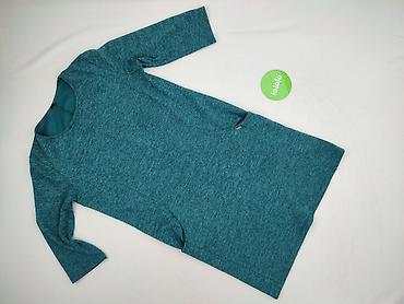 Zielona sukienka damska, rozmiar 44 - Fason: prosta, lekko dopasowana, długość przed kolano - Rękaw: 3/4 - Dekolt: okrągły - Materiał: mięsisty, elastyczny dzianinowy żakard z drobną geometryczną ...