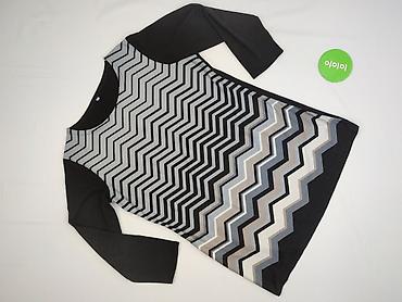 Sukienka damska z geometrycznym wzorem - Fason: prosta, lekko dopasowana tubowa, długość za kolano (midi) - Rękaw: 3/4 - Dekolt: okrągły - Rozmiar z metki: 52 - Kolorystyka: czarno-biała, wyrazist...