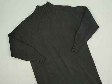 Sukienka dzianinowa z golfem - Fason: dopasowany, prosta linia, długość za kolano - Rękaw: 3/4 - Dekolt: wysoki golf/stójka - Kolor/wzór: melanż czarno‑szary z subtelnymi, jasnymi nitkami - Materi...