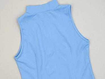 Sukienka damska bez rękawów, pastelowy błękit. - Rozmiar: 44 (metryczka widoczna na zdjęciu). - Krój: dopasowana góra z zaszewkami, rozszerzany dół z kontrafałdami – lekko trapezowa linia, długość ...