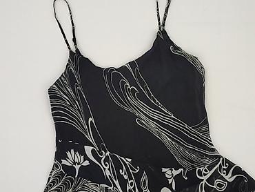 Sukienka damska na ramiączkach, rozmiar S. - Krój: zwiewna, długość midi, lekko rozkloszowana. - Dekolt: z falbaną opadającą na przód i boki. - Ramiączka: cienkie, w tym samym wzorze. - Wzór: czar...