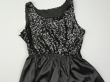 - Detale: górna część bogato zdobiona czarnymi i srebrzystymi cekinami, podkreślona talia z marszczeniem przechodzącym w obszerną spódnicę