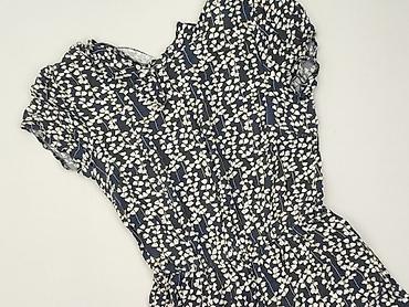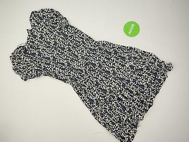 Sukienka damska RESZKA, rozmiar 38 - Krój: mini/za kolano, taliowana, lekko rozkloszowany dół - Wzór: granatowa w drobne, jasne kwiaty - Materiał: zwiewna, lekko transparentna tkanina z delikatną ...