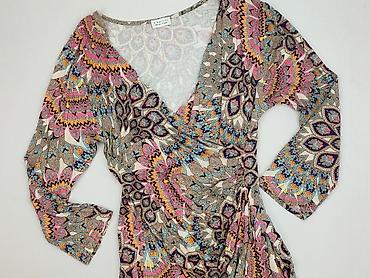 Sukienka damska F&F - Model: dzianinowa sukienka mini/tunika z krótkim rękawem - Wzór: orientalny/paisley na kremowym tle, dekoracyjna bordiura u dołu - Dekolt: w kształcie litery V z metalową wst...