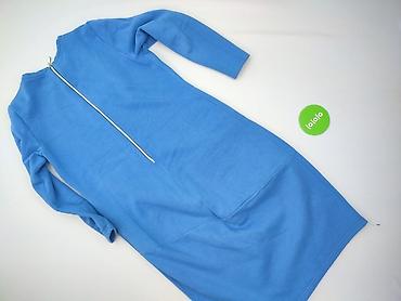 Niebieska sukienka swetrowa prążkowana - Damska, rozmiar: L - Fason: dopasowana, dzianinowa, długość za kolano (midi) - Dekolt: w serek (V-neck) - Rękaw: długi - Struktura: wyraźne pionowe prążki,...