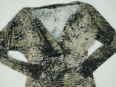 Sukienka damska RESERVED, rozmiar L - Fason: rozkloszowana spódnica, długość do kolan, dekolt w serek z ozdobnymi guzikami z przodu - Rękawy: długie - Wzór: motyw wężowej skóry w odcieniach rudo‑b...