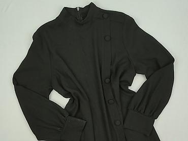 Sukienka damska, czarna, Made in Italy - Fason: dopasowany, długość za kolano/około midi - Długi rękaw - Dekolt z ozdobną, kaskadową falbaną z przodu; falbana również na ramionach - Zapięcie na ozd...