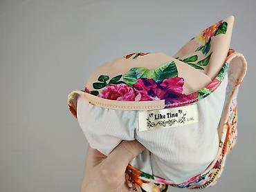 - Wzór: intensywny, kwiatowy print na beżowo‑brzoskwiniowym tle (róże, lilie i liście w żywych kolorach)