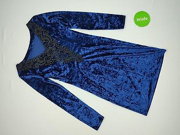 Sukienka damska welurowa w kolorze granatowym, rozmiar L. - Fason: kopertowy dekolt w kształcie V, odcinana w talii, długość za kolano (midi). - Materiał: 95% poliester, 5% elastan – miękki, elast...Stan: