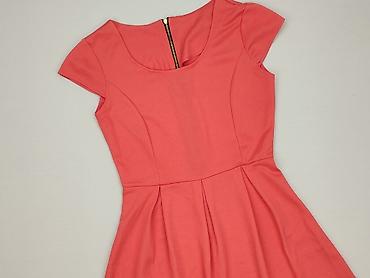 Sukienka damska w kolorze koralowym - Fason: prosta, lekko dopasowana, długość przed kolano - Rękaw: 3/4 - Dekolt: łagodnie zaokrąglony - Zapięcie: zamek kryty z tyłu - Rozmiar na metce: S - Mater...Stan: