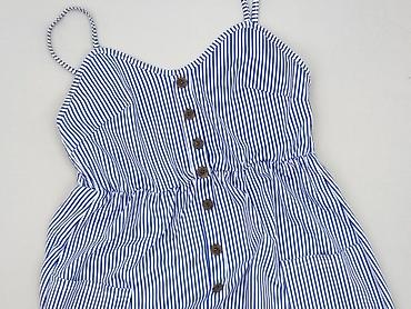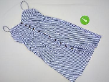 Sukienka damska na ramiączkach, w biało-niebieskie paski - Krój: lekko rozkloszowany dół z delikatnymi falbanami, odcięcie w talii - Góra: dekolt w kształcie serka, listwa z guzikami z przodu - Ra...